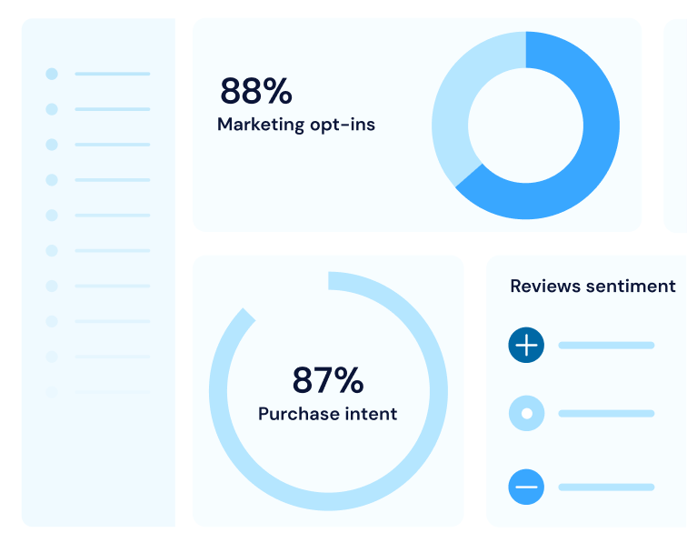 Every campaign returns written reviews, purchase intent scores, and consumer opt-ins from people who've used your product at home, with enough time to form a genuine opinion.